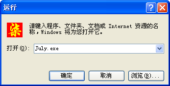 有的函數在DLL中并沒有函數名稱,這又如何調用呢?事實上所有的API函數無論有無名稱,都會有一個ID,來在DLL中標識自己。比如函數RunFileDlg,它的ID是61,功能是顯示系統“運行”對話框。下圖所列的是我開發的進程管理軟件July中所調用的“運行”對話框:
