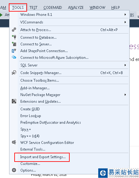 1、打開VS工程,然后點擊“Tools”。選擇導(dǎo)入導(dǎo)出配置,如圖