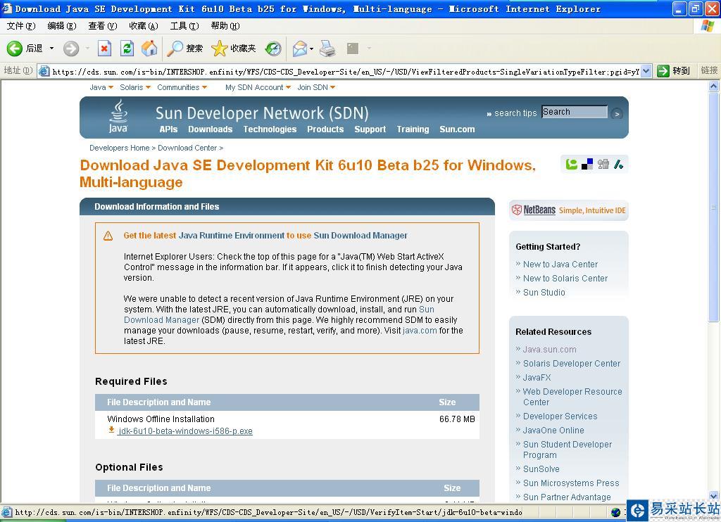直接點擊Windows Offline installation(Win離線安裝包)字樣下的jdk-6u10-beta-windows.i586-p.exe。