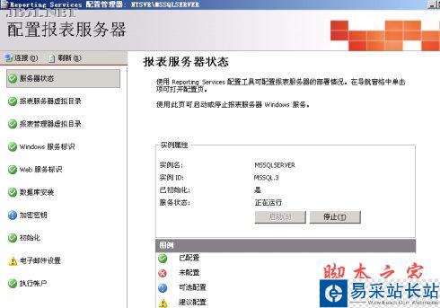 5、選擇開始菜單中的SQL Server 2005的“配置工具/Reporting Services配置”,手動配置一下報表服務(wù),以初始化報表服務(wù),類似下面這樣,報表服務(wù)就算成功安裝并初始化完成了