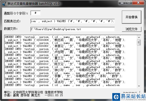 接下來我們點擊"瀏覽文件",選擇我們剛剛保存的"person.txt",就是那些數據了。之后就可以點擊"開始替換"進行替換操作了,如果成功的話,會在下面的文本框里看到替換后的結果。你可以直接全選,然后復制,當然,你也可以選擇點擊"保存到文件"將它們保存至你想要的文件里。