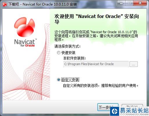 1、雙擊它的安裝文件,出現如下所示的界面,這里我選擇的是自定義安裝,單擊“下一步”繼續安裝,如圖所示: