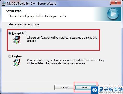 4、在出現(xiàn)的安裝類型頁(yè)面中,我設(shè)置安裝的類型為完整安裝,單擊“next”繼續(xù)安裝,如圖所示: