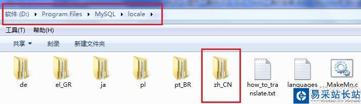 7、在安裝結(jié)束之后,圖形化的工具是英文版的,這里我將工具漢化了,從網(wǎng)上將下載的漢化包解壓得到“zh_CN”文件夾,將他放入到MySQL圖形工具的安裝目錄(即MySQL數(shù)據(jù)庫(kù)的安裝位置)下的“locale”文件夾下,如圖所示: