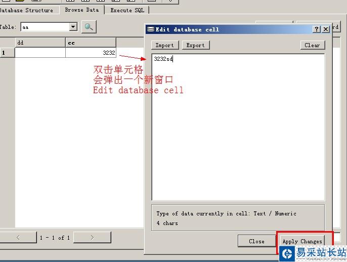 修改表數據完畢后,記得點擊“Apply Changes”按鈕