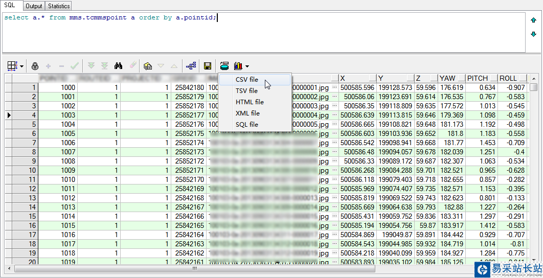 一 導出Oracle數據表為csv文件查詢數據表tcmmspoint原始數據,將其導出為CSV格式文件。