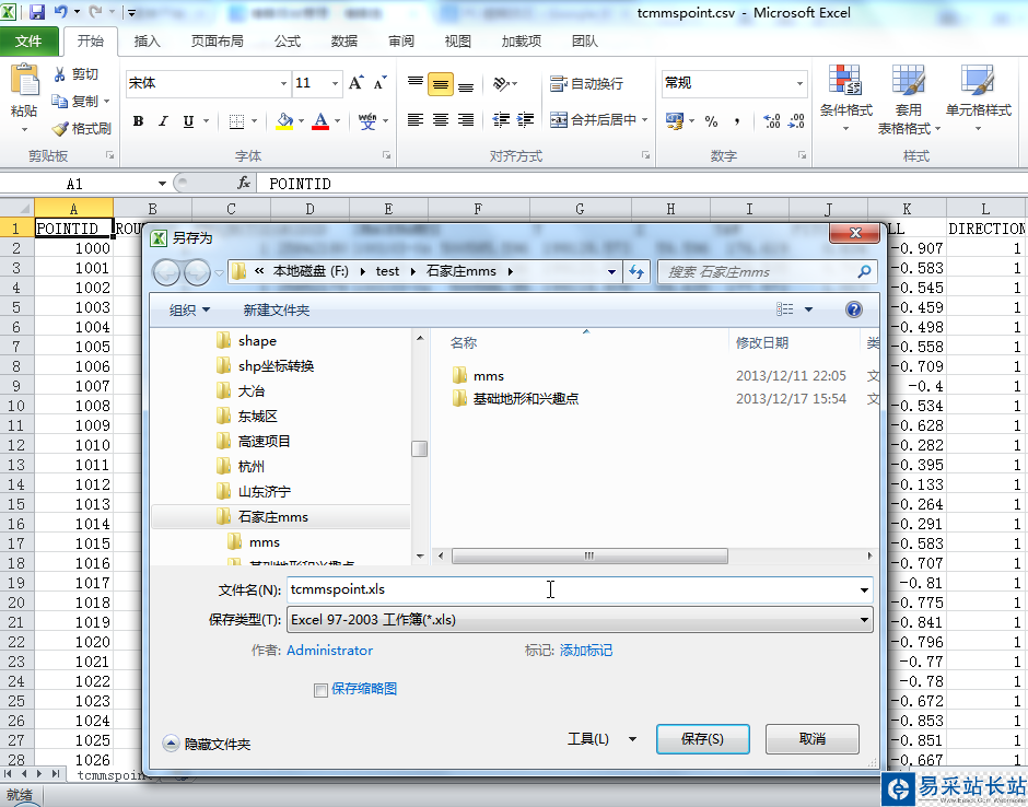 用Excel打開上一步導出的CSV文件,另存為XLS格式文件(注意使用Excel 97-2003工作簿格式)。