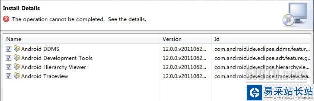 Android DDMS , Android Hierarchy Viewer 和 Android Traceview都已成功的安裝,但Android Development Tools 安裝出現錯誤,錯誤提示如下: