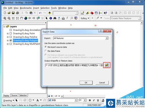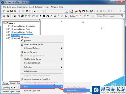 2、選擇你需要的其中某個要素,這里選擇面狀要素,采用導出為shp文件的方法,右擊》Data》Export Data,打開Export Data框,選擇導出文件存放的路徑。