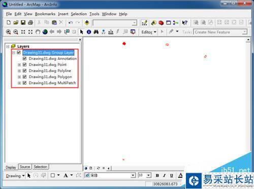 1、首先,打開ArcMap,加載CAD文件,可以全部添加進去,也可以單個添加各個要素;這里全部添加進去是一個組合,也可以將其拆開(Ungroup)。