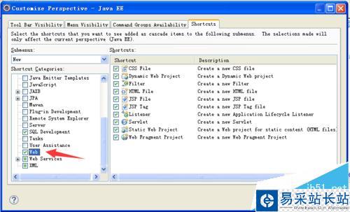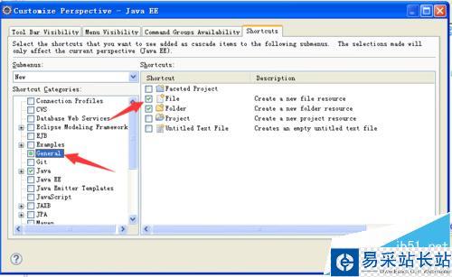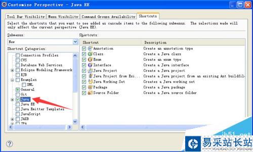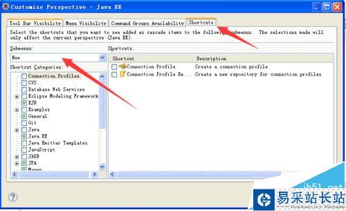 3、Eclipse為我們提供了new菜單的設置項,可以按照自己的喜好和常用工具來設置。如下圖: