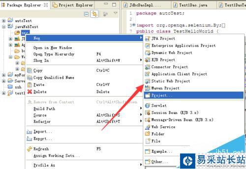 1、我們在工程中右鍵 New新建的時候,默認的Eclipse的初始設置如下: