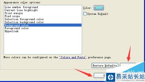 3、去掉System Default前的勾選,然后再顏色選擇框選中自己中意的顏色
