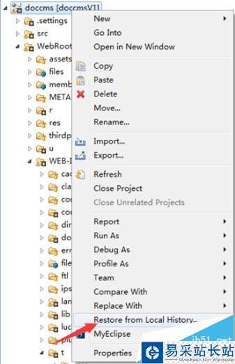2、右鍵你的項目,選擇Restore from Local,就可以看到你最近刪除的項目文件了。