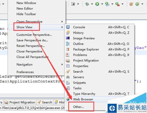 4、如果在Show View的右側(cè)沒有顯示出Console,點擊Other。從這里選擇顯示控制臺。