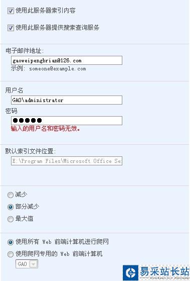 點擊“開始”后,就可以開啟Office SharePoint Server搜索,這里要注意的是,用戶名需要寫成:域名+用戶名的形式。否則啟動服務時就會出錯。開啟成功后會自動返回服務器上的服務界面: