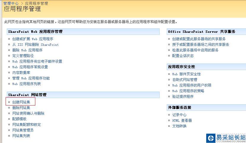 來到熟悉的應用程序管理界面,在SharePoint 網站管理中,我們就可以創建網站: