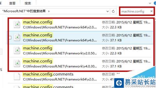 4、找到C:/Windows/Microsoft.NET.目錄,在該目錄下搜索"machine.config"文件。根據你的系統不同,machine.config文件的數量也不同。我有4個,分別在下面四個目錄下