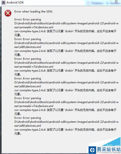 解決方法:刪除錯誤位置的Devices.xml,替換Tools/lib/下的Devices.xml文件即可。