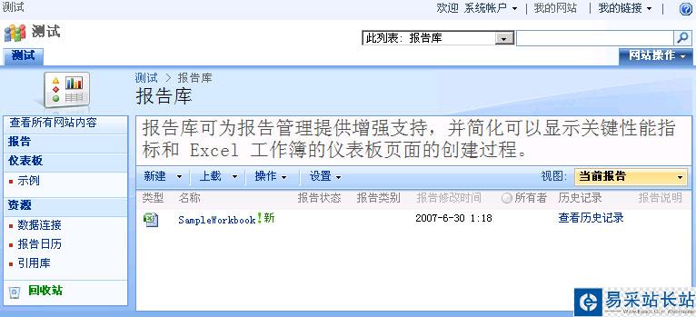 在80端口建立一網站集,使用報告中心模板,用作發布Excel報表