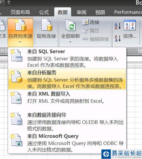 新建一Excel文檔。在文檔中連接到OLAP服務器。