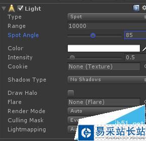 之前簡單介紹了一下unity3d中的光源分類,默認情況下的光源是白色的。對于需要創建絢麗或者唯美的游戲,實在不妥。可是很好,unity3d中的光源經過合適的調整,就可以創建出非常美麗的畫面,下面對此詳細介紹一下。