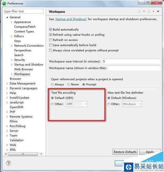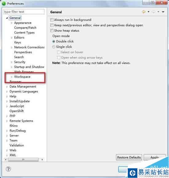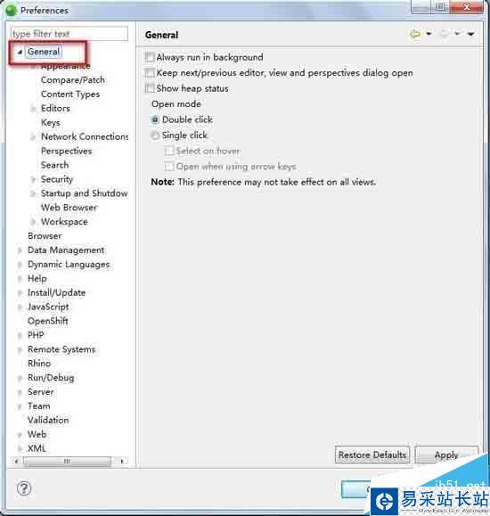 1 依次打開 window->preference->General