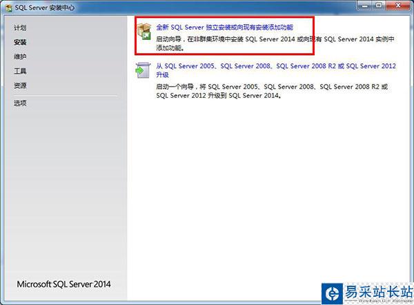 4、準備安裝,選擇第一個“全新SQL Server獨立安裝或向現有安裝添加功能”