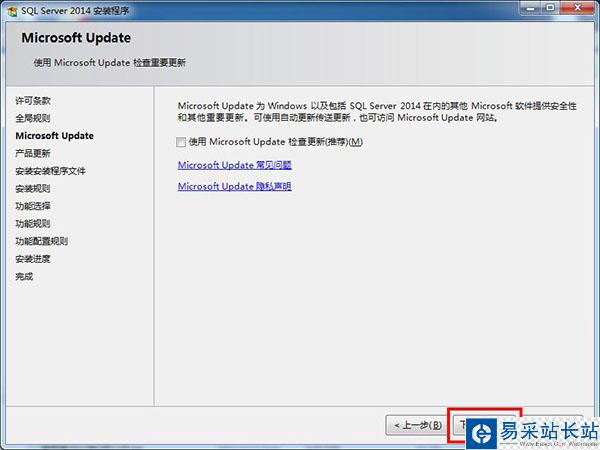 6、這里問我們是否使用"Microsoft Update"檢查重要更新,不用勾選,直接點擊下一步。