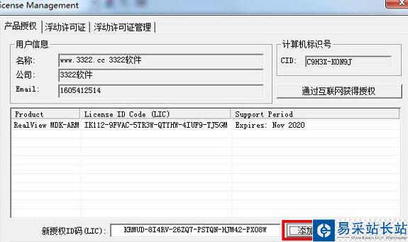 4、然后將其復制到如下圖,點擊“添加授權”,出現下圖標示的地方即表示破解完成,可以使用到2025年。過期了可以按照這個方法重新破解