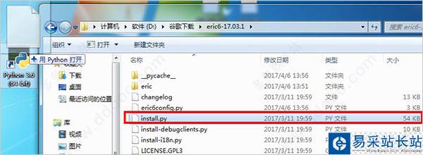 2.然后打開Eric6目錄(解壓后應該是eric6-17.03.1),找到install.py,雙擊進行安裝或者直接將它拖動到python快捷方式也能安裝。