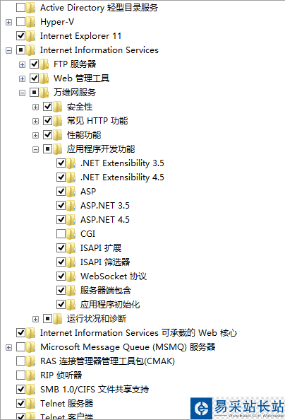 這時候我知道了是Web調試器沒有啟動,但是卻不明白為什么。于是檢查IIS8.5的安裝情況,把一些可能需要安裝的都給裝了。