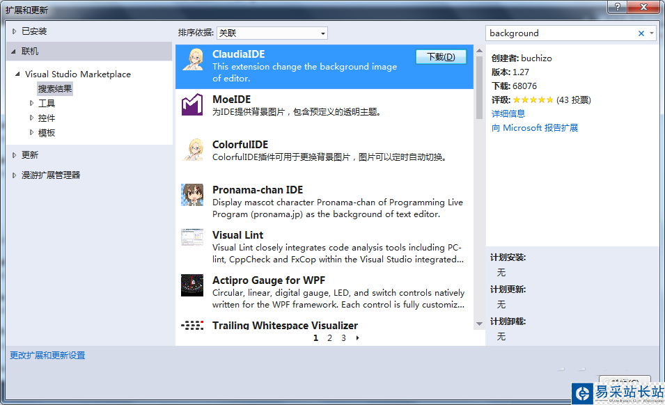 3、根據(jù)自己的喜好,可以選擇其中的一個(gè)插件,進(jìn)行下載安裝,下載完成后會(huì)有提示關(guān)閉VS2017。關(guān)閉后出現(xiàn)此界面。