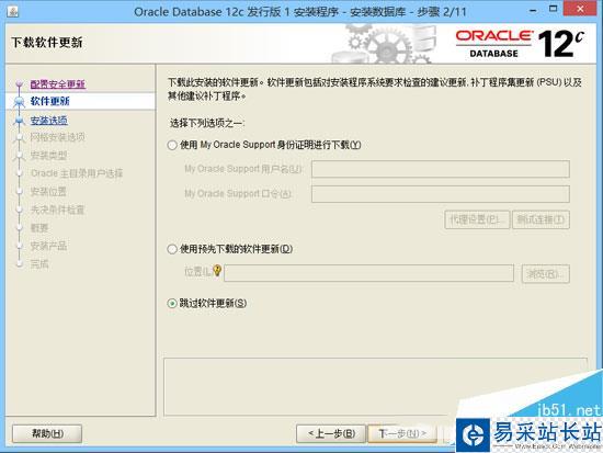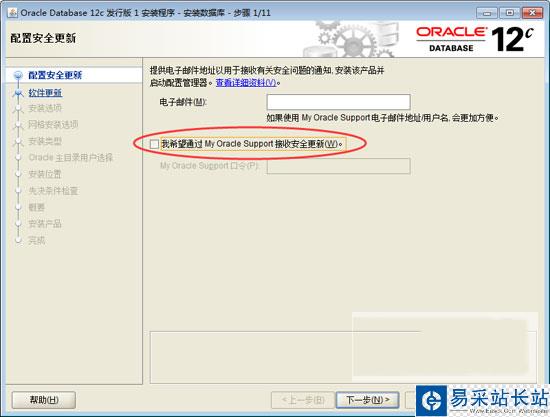 3、“配置安全更新”,取消“我希望通過My Oracle Support接受安全更新”,單擊“下一步”