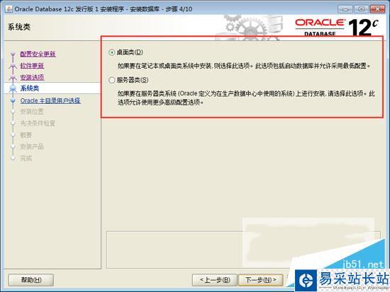 6、根據介紹選擇”桌面類”還是”服務器類”,選擇”服務器類”可以進行高級的配置,這里選擇”桌面類”,單擊”下一步“