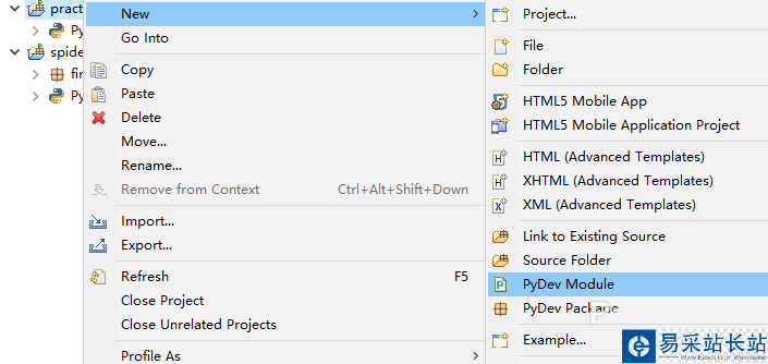 1、首先,在myeclipse中創建一個python項目,然后再創建python模塊