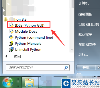 2、接著啟動python軟件,通過開始菜單,找到如下圖所示快捷方式,啟動用戶交互界面。