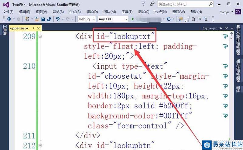 2、在標(biāo)簽中設(shè)置搜索框的標(biāo)識(shí),標(biāo)識(shí)名為lookuptxt。