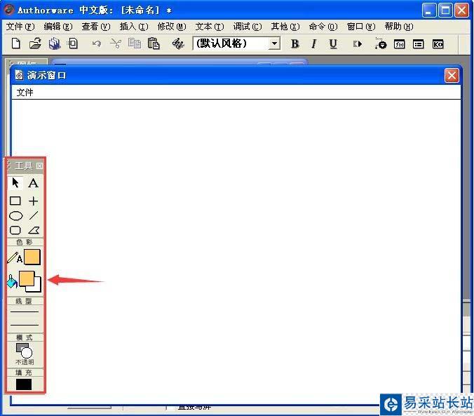 3、雙擊顯示圖標,打開工具,定義好描邊色和填充色;