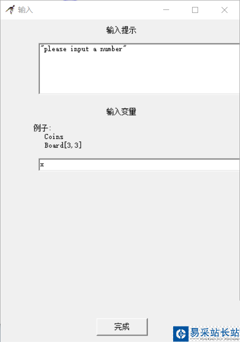 3、雙擊輸入框 在輸入框上方輸入 "please input a number",下方輸入 x