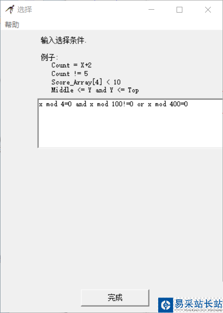 4、雙擊判斷框 輸入 x mod 4=0 and x mod 100!=0 or x mod 400=0