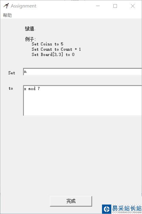 4、在賦值框1上方輸入 n 下方輸入 x mod 7