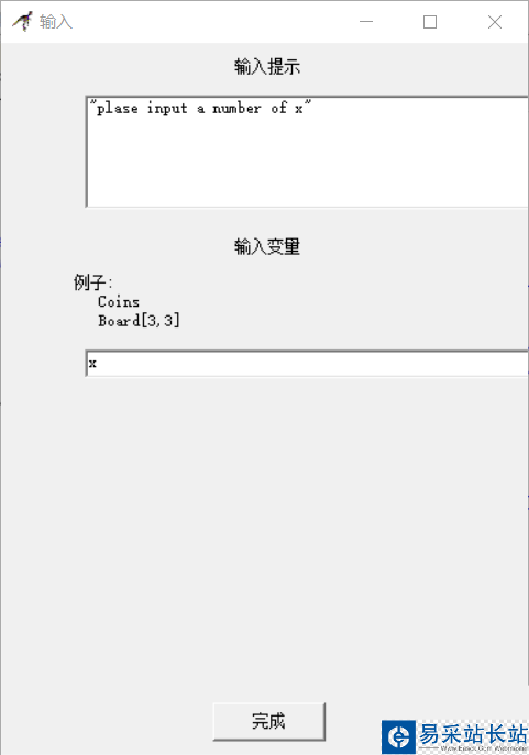 3、在輸入框中上方輸入“please input a number of x”下方輸入 x