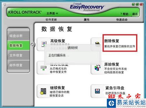 EasyRecovery提供了四大功能:磁盤診斷、數據恢復、文件恢復、郵件修復。對于誤刪資料的情況,我們選擇“數據恢復-刪除恢復”即可。