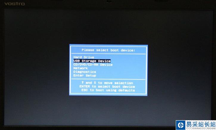第四步驟:硬盤模式修改好以后接下來開始設置u盤啟動。重新啟動電腦,還是重復第一步驟出現畫面的時候連續不停地按F2鍵,進入BIOS。然后按鍵盤“↑↓”上下鍵移動到“USB Storage Device”