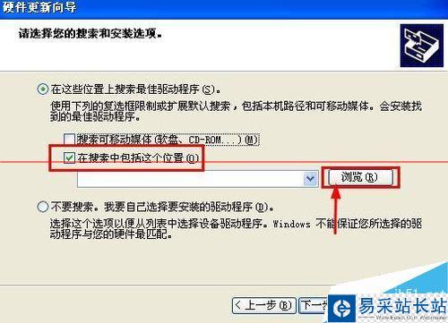 7、硬件更新向導的這里我們選擇在搜索中包括這個位置,右邊的瀏覽。