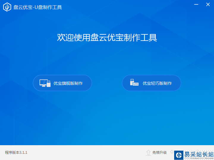 免格升級:之前用盤云優寶制作工具制作過U盤的客戶,如果需要升級,無需重新制作一遍,只需免格升級即可。
