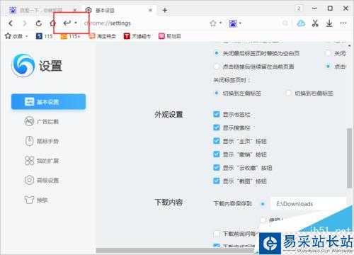 115瀏覽器中,在工具欄中默認沒有顯示撤銷按鈕。可是我們需要撤銷按鈕顯示在工具欄中(如下圖,沒有顯示紅方框中的符號)。那么,我們應該怎么設置呢?一起來了解下吧!
