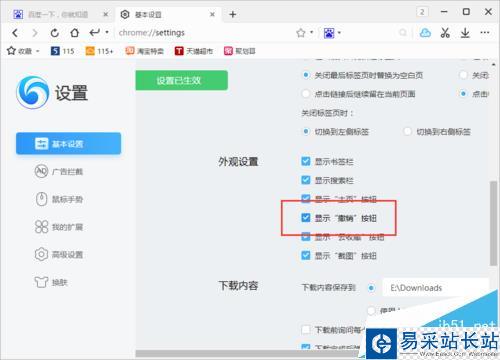7、設置好以后,在瀏覽器工具欄中可看到撤銷按鈕顯示在其中。如圖所示;