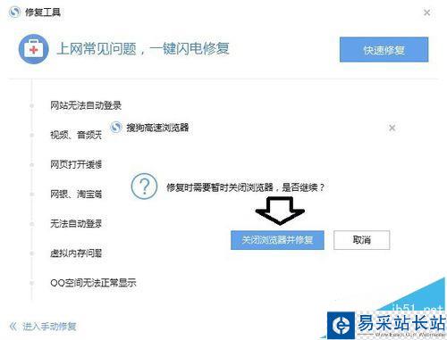 9、充分利用搜狗瀏覽器的修復工具,可以解決很多稀奇古怪的問題。